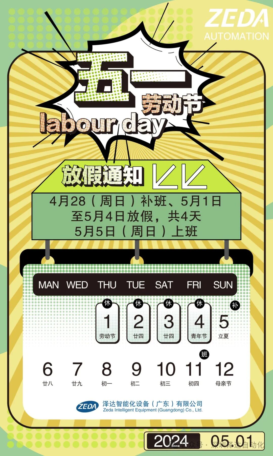 澤達放假日期如下